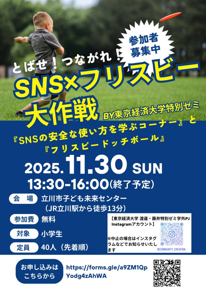 【中止】とばせ!つながれ!SNS×フリスビー大作戦!(by 東京経済大学キャリアデザインゼミ)