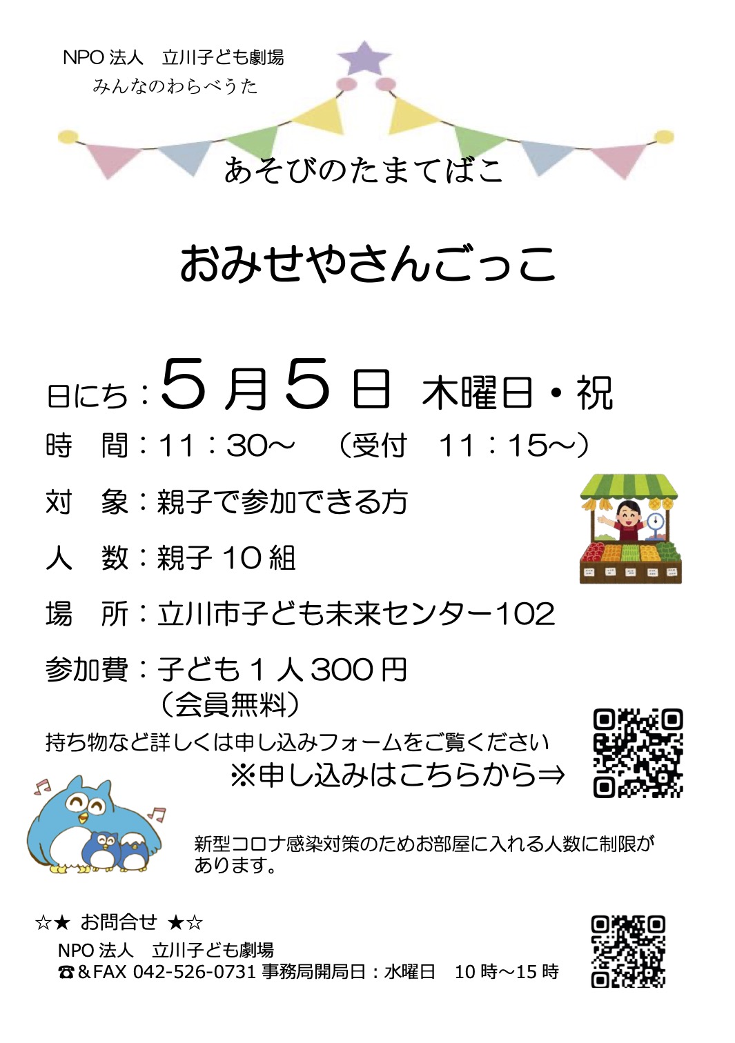 5月は親子で楽しく『お店屋さんごっこ』です!