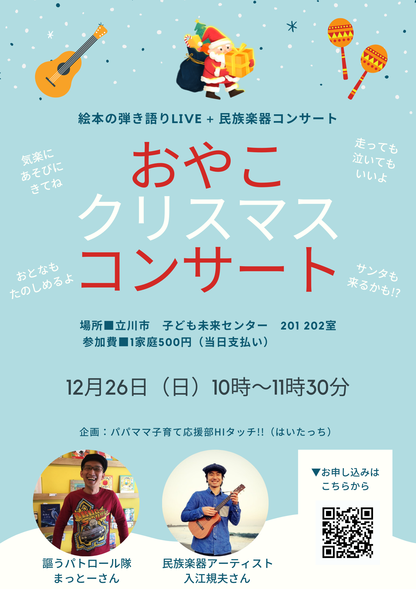 親子クリスマスコンサート 〜絵本の弾き語りと民族楽器で楽しもう〜(パパママ子育て応援部Hiタッチ!!)