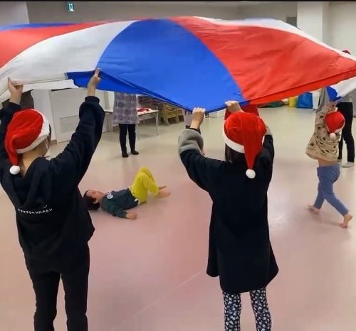 パラバルーンやパネルシアターを使い、音と視覚で体感し、体を動かしながら遊んでクリスマスを楽しもう!